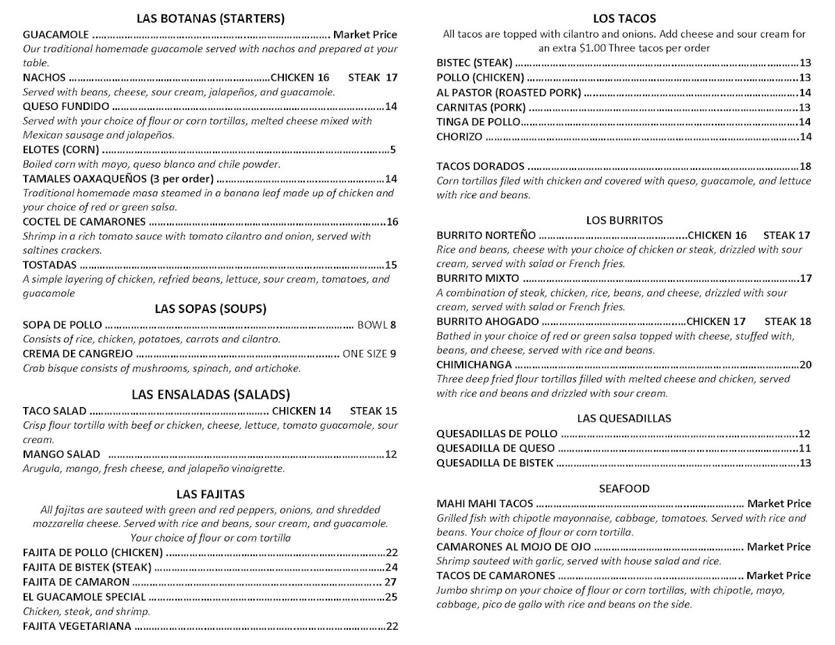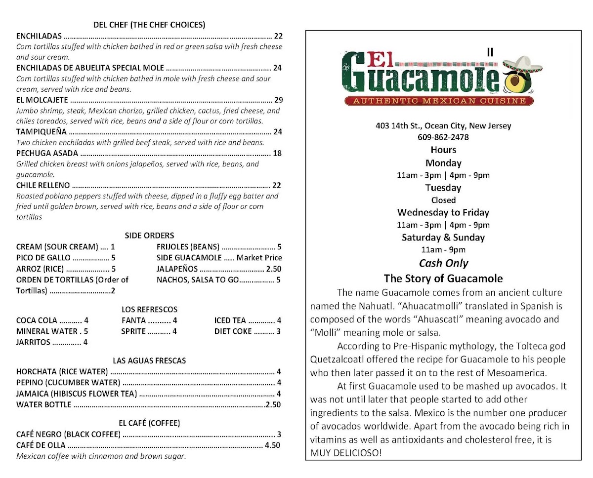 El Guacamole Menu
